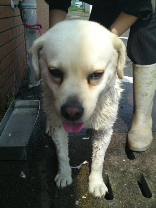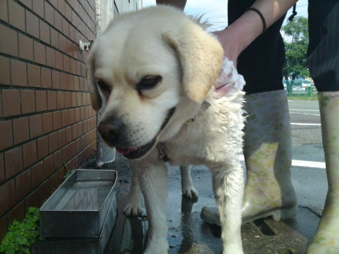 エリアわんの≪こっぺ≫でございます♪ 久々の登場♪ 今回は、『今日のレオ様☆』をお送り致します!(・ω☆)キラン☆ 今日の熊本は快晴!!! こんな日には、水浴びが一番っ!!!! てな訳で、レオ様☆のシャンプー大会が行われました♪(笑) ↑ジョセフィーヌサンにゴシゴシされているレオ様☆ 案外、大人しくしてるのね♪ っと思いきや、 やられましたよ!!! レオ様☆のブルブル攻撃!!!∑∑∑(/゚□゚)/!! 気付いた時には遅かった・・・ わたくし、靴もズボンも濡れました・・・(笑) でも、レオ様☆のブルブルする姿が、 めちゃくちゃ可愛かったので、許しちゃいます☆(笑) シャンプー後は、ジョセフィーヌサンにタオルで綺麗に拭いてもらい、 ご満悦なレオ様☆なのでした♪ やっぱり、シャンプーすると、白くなるもんだ♪ 綺麗になって良かったね☆★ という訳で、『今日のレオ様☆』をお送り致しました♪ それではまたっ!!! ≪こっぺ≫でしたぁ♪ o(*´ー`)〇"グッ♪o(*´▽`)ノ"バーイ♪ |