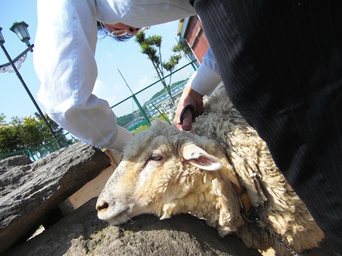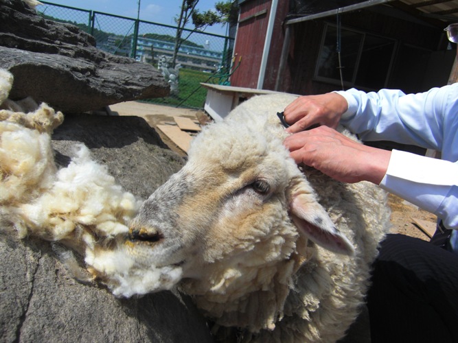 うちのはるかが!! 羊のはるかが!! ついに毛を刈られることになりました。 5月といえど九州熊本! 暑いんです!! ちなみに今日の気温は27℃。 今日の日中・・・ 支配人がついにはさみをあげました! (ばりかんがないので・・・) ちょっとどきどきしている様子のはるか。 でも意外とじっとしています なぜか刈られた自分の毛を食べています。 さぁでも、今日の毛刈りはココまで。 やっぱりはさみで切るのは大変です。 首回りまでで今日は終了。 はるかが夏も涼しく過ごせるように ちょっこっとずつ毛刈りしていきます! ヽ(●´w`○)ノ 今後のはるかの姿にこうご期待!! ではまたヾ(*゚ω゚)人(*゚ω゚)ノシ バイバイィン