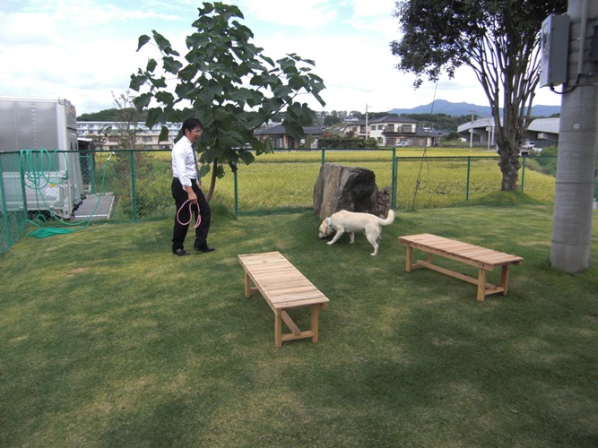 ドッグランにも秋が来て 落葉をかき集める毎日です。 さて、10月9日にエリアわんに仲間が加わりました!! 【レオ♂】デスUo-ェ-oU ポッ♪!! 南阿蘇の方が飼われていたわんちゃんを 譲っていただけるようになりました。 ラブラドールとパグのMIXです★ とっても大人しくて穏やかな性格です! が、お散歩の時はすごくはしゃいでいます♪ ドッグランも慣れて今は大型犬預かり所で ドッグラン利用のお客様をお出迎えしています! ゚+.ヾUゝェ・`Uノ.+゚.。oO(。゚+.いらっしゃいませ。゚+.) これからは看板犬として頑張ってくれると思います♪ エリアわんに来られた際はぜひぜひ【レオ】って呼んであげてください! σ(@゚ー゚@)ヨロシク♪ |