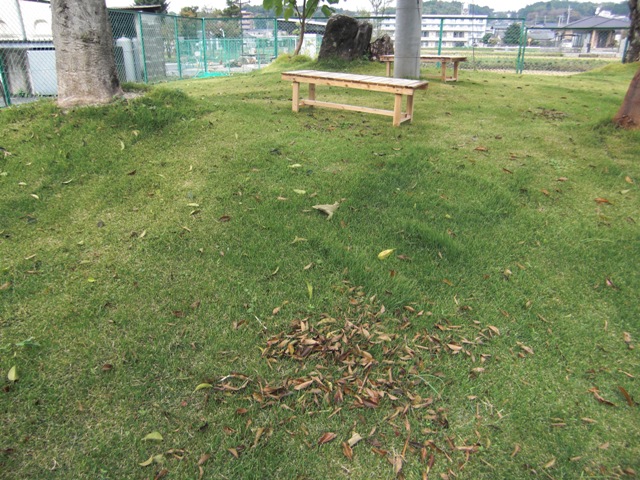 ▽・_・;▽ わん..。落葉のドッグランコーナーを一人占めしているレオ